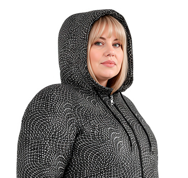 Модель хороша, но не на все типы фигур. При небольшой разнице объемов между грудью и бедрами модель топорщиться на спинке внизу. Также лекало капюшона не самое удобное, хотя и красивое. Не практично при ветре: приходится его придерживать руками или завязывать шарфом. Красивая ткань, очень красивый мех и качественный пошив. Можно сделать модели на разные типы фигур, меняя ширину спинки в бедрах, а удобные капюшоны можно посмотреть у моделей фабрики Бижур.