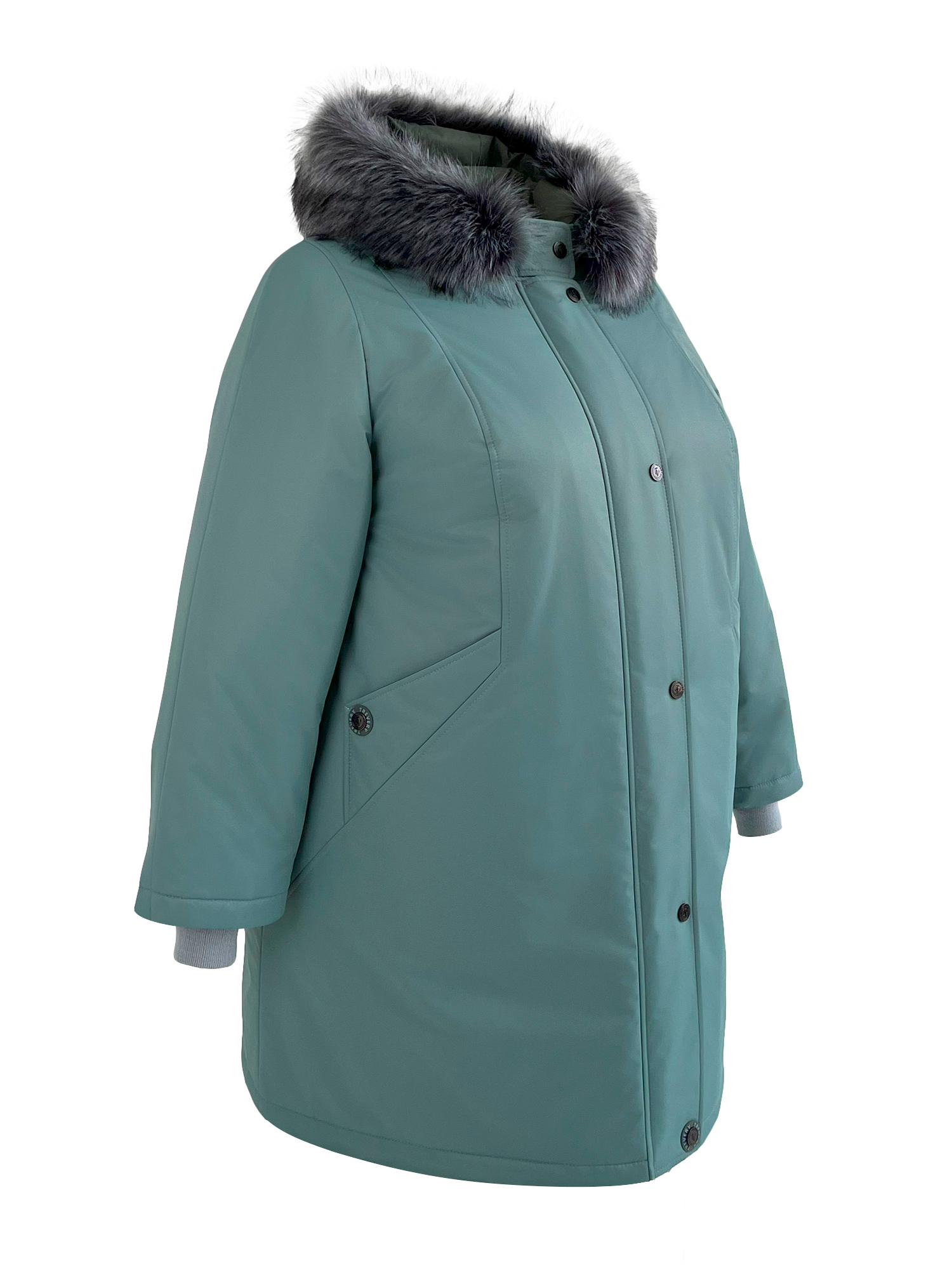 Интересная женская зимняя куртка из плащевой ткани цвета мятный на утеплителе Альполюкс, расположенного по всему изделию. Утеплитель Альполюкс производится из натуральной шерсти овец Меринос и полиэфирных микроволокон. Экологический гипоаллергенный материал прекрасно удерживает тепло человеческого тела, сохраняя его даже при длительном пребывании на холоде. Легкий и теплый утеплитель обладает хорошей воздухопроницаемостью, одежда не мнется, быстро восстанавливая первоначальный вид. Свободный силуэт трапеция скорректируют фигуру, а вертикальные рельефы визуально вытянут. Изюминку модели придают брендированные силиконовые вставки, эффектные кнопки, трикотажная манжета. Карман в шве с клапаном и фиксированный кнопкой. Отворот большого, красивого капюшона из эко-меха чернобурки. Внутренние лямки позволяют носить изделие как рюкзак. Такая практичная модель будет прекрасно защищать от холода и ветра зимой и украсит ее обладательницу.