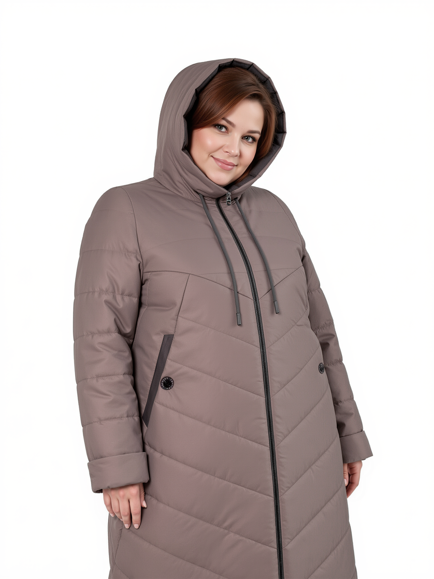 Уважаемые покупатели! Мы упростили выбор — для каждого артикула прописаны параметры груди и бедер. Ориентируйтесь на объем груди, затем проверьте, входит ли ваш ОБ в диапазон, указанный рядом с нужным размером. Если нет — фасон вам не подойдет, выберите другой. Наши конструкторы разрабатывают одежду для разных фигур, и вы обязательно найдете подходящий вариант. Этот фасон идеален для фигуры с разницей ОБ и ОГ 20 см. Длина по спинке 114 см. Также можно сверить мерки своего пальто с таблице промеров готового изделия. Если не уверены, отправьте рост, ОГ и ОБ — мы подскажем правильный размер. Отвечаем быстро, в течение дня. Так вы получите максимально точное попадание и избежите лишней пересылки. Женское демисезонное пальто большого размера — это теплое, стильное и практичное решение для прохладной осенней погоды до -5℃. Удлиненная модель с капюшоном дорогого премиум класса создана специально для полных женщин и отличается продуманным кроем реглан и комфортной посадкой. А-силуэт в форме трапеции и длина ниже колена визуально стройнят фигуру и дарят свободу движений. Эта длинная куртка деми выполнена на прочной брендовой молнии YKK с удобным замком. Утепленное синтепоном, она отлично сохраняет тепло, подходит на осень. Классическое исполнение сочетается с модным дизайном и красивыми расцветками, что делает модель универсальной частью вашего гардероба. Такая стеганая верхняя одежда на демисезон — классика для любящих комфорт и актуальные тенденции. Она подчеркнёт вашу индивидуальность и привлечёт взгляды. Наше качество радует годами и заслуживает пристального внимания. Отзывы с превосходными оценками помогут вам определиться с заказом. Чтобы не пропустить новые коллекции 2025 2026 плюс сайз, нажмите на логотип Trevery и добавьте наш сайт в избранное. Приятных покупок!