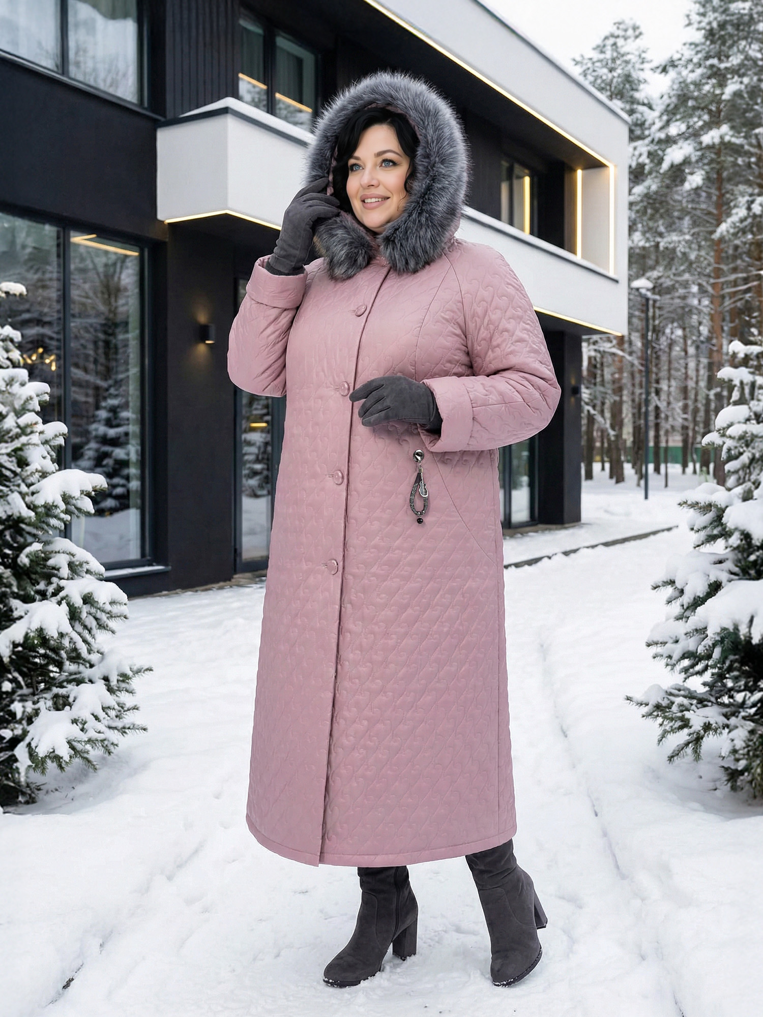 Уважаемые покупатели! Мы упростили выбор — для каждого артикула указаны параметры груди и бёдер. Ориентируйтесь на объём груди, затем проверьте, входит ли ваш ОБ в диапазон, указанный рядом с нужным размером. Если нет — фасон вам не подойдет, выберите другой. Наши конструкторы разрабатывают одежду для разных типов фигур, и вы обязательно найдёте подходящий вариант. Этот фасон идеален для фигуры с разницей ОБ и ОГ 20 см. Длина по спинке 121 см. Также можно сверить мерки своего пальто с таблице промеров готового изделия. Если не уверены — отправьте рост, ОГ и ОБ, подскажем правильный размер. Отвечаем быстро — в течение дня. Это поможет сделать точный выбор и избежать лишней пересылки. Женское зимнее пальто большого размера — стильное и практичное решение для холодной погоды до -25℃. Удлиненная теплая модель с капюшоном создана специально для полных женщин и отличается продуманным кроем реглан и комфортной посадкой. А-силуэт в форме трапеции и длина ниже колена визуально стройнят фигуру и обеспечивают свободу движений. Это длинное стеганое пальто застегивается на пуговицы и идеально подойдёт на зиму. Классическое исполнение с мехом чернобурки сочетается с модным дизайном и красивыми расцветками, делая эту утепленную модель универсальной частью гардероба. Такая верхняя одежда на синтепоне — это проверенная классика для тех, кто любит комфорт, актуальные тенденции и практичность. Она подчеркнёт вашу индивидуальность и привлечёт внимание окружающих. Наше качество радует годами и заслуживает вашего доверия. Отзывы с превосходными оценками помогут определиться с заказом. Чтобы не пропустить новые коллекции 2025–2026 плюс сайз, нажмите на логотип Trevery и добавьте наш сайт в избранное. Приятных покупок!