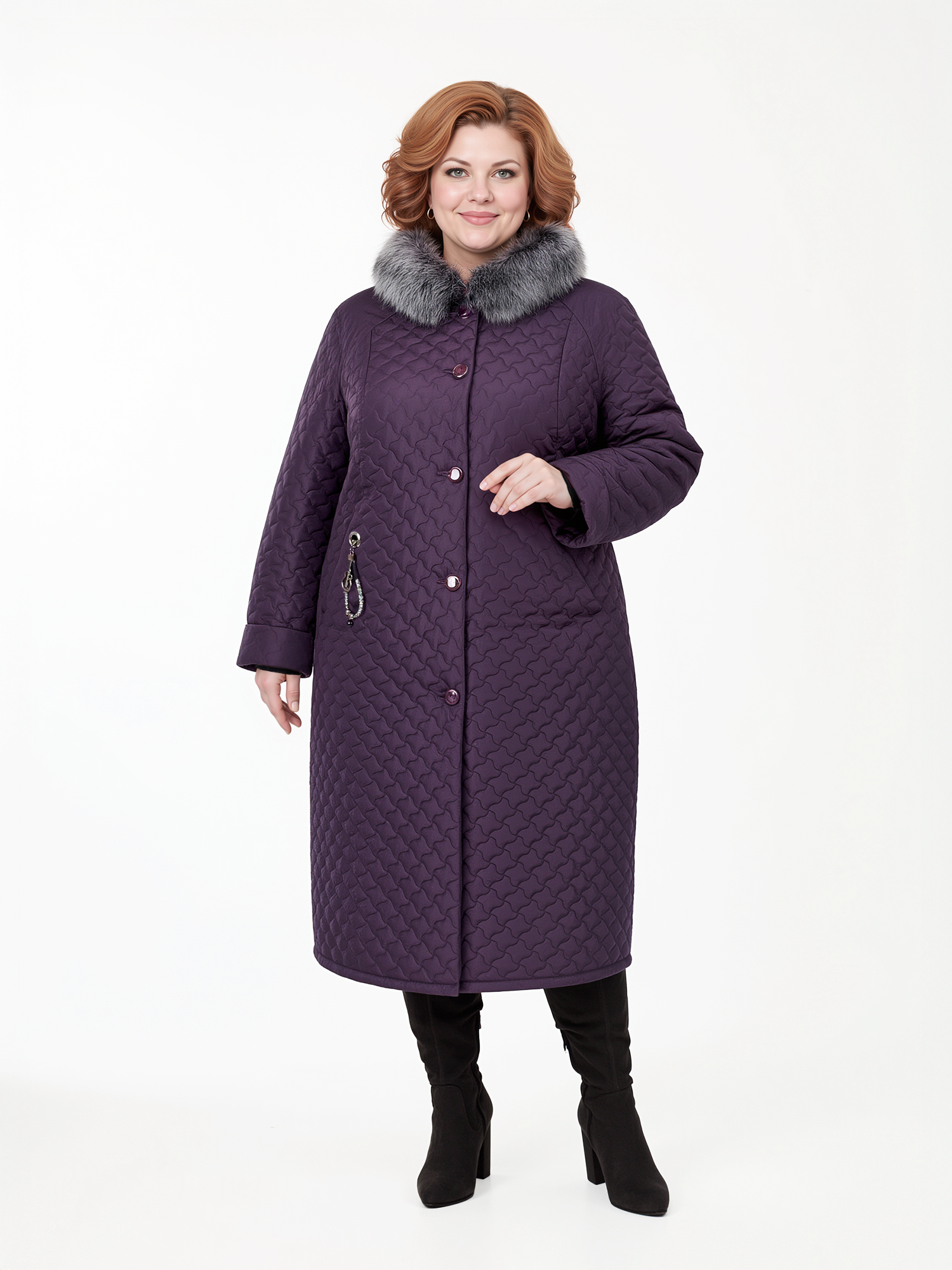 Уважаемые покупатели! Мы упростили выбор — для каждого артикула указаны параметры груди и бёдер. Ориентируйтесь на объём груди, затем проверьте, входит ли ваш ОБ в диапазон, указанный рядом с нужным размером. Если нет — фасон вам не подойдет, выберите другой. Наши конструкторы разрабатывают одежду для разных типов фигур, и вы обязательно найдёте подходящий вариант. Этот фасон идеален для фигуры с разницей ОБ и ОГ 8 см. Длина по спинке 117 см. Также можно сверить мерки своего пальто с таблице промеров готового изделия. Если не уверены — отправьте рост, ОГ и ОБ, подскажем правильный размер. Отвечаем быстро — в течение дня. Это поможет сделать точный выбор и избежать лишней пересылки. Женское зимнее пальто большого размера — стильное и практичное решение для холодной погоды до -25℃. Удлиненная теплая модель с капюшоном создана специально для полных женщин и отличается продуманным кроем реглан и комфортной посадкой. А-силуэт в форме трапеции и длина ниже колена визуально стройнят фигуру и обеспечивают свободу движений. Это длинное стеганое пальто застегивается на пуговицы и идеально подойдёт на зиму. Классическое исполнение с мехом чернобурки сочетается с модным дизайном и красивыми расцветками, делая эту утепленную модель универсальной частью гардероба. Такая верхняя одежда на синтепоне — это проверенная классика для тех, кто любит комфорт, актуальные тенденции и практичность. Она подчеркнёт вашу индивидуальность и привлечёт внимание окружающих. Наше качество радует годами и заслуживает вашего доверия. Отзывы с превосходными оценками помогут определиться с заказом. Чтобы не пропустить новые коллекции 2025–2026 плюс сайз, нажмите на логотип Trevery и добавьте наш сайт в избранное. Приятных покупок!
