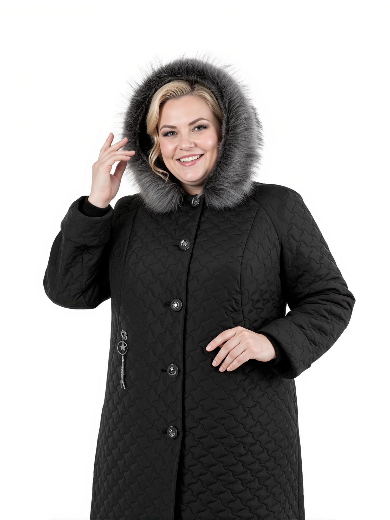 Уважаемые покупатели! Мы упростили выбор — для каждого артикула указаны параметры груди и бёдер. Ориентируйтесь на объём груди, затем проверьте, входит ли ваш ОБ в диапазон, указанный рядом с нужным размером. Если нет — фасон вам не подойдет, выберите другой. Наши конструкторы разрабатывают одежду для разных типов фигур, и вы обязательно найдёте подходящий вариант. Этот фасон идеален для фигуры с разницей ОБ и ОГ 12 см. Длина по спинке 107 см. Также можно сверить мерки своего пальто с таблице промеров готового изделия. Если не уверены — отправьте рост, ОГ и ОБ, подскажем правильный размер. Отвечаем быстро — в течение дня. Это поможет сделать точный выбор и избежать лишней пересылки. Женское зимнее пальто большого размера — стильное и практичное решение для холодной погоды до -25℃. Удлиненная теплая модель с капюшоном создана специально для полных женщин и отличается продуманным кроем реглан и комфортной посадкой. Длина ниже колена визуально стройнит фигуру и обеспечивает свободу движений. Это длинное стеганое пальто застегивается на пуговицы и идеально подойдёт на зиму. Классическое исполнение с мехом чернобурки сочетается с модным дизайном и красивыми расцветками, делая эту утепленную модель универсальной частью гардероба. Такая верхняя одежда на синтепоне — это проверенная классика для тех, кто любит комфорт, актуальные тенденции и практичность. Она подчеркнёт вашу индивидуальность и привлечёт внимание окружающих. Наше качество радует годами и заслуживает вашего доверия. Отзывы с превосходными оценками помогут определиться с заказом. Чтобы не пропустить новые коллекции 2025–2026 плюс сайз, нажмите на логотип Trevery и добавьте наш сайт в избранное. Приятных покупок!