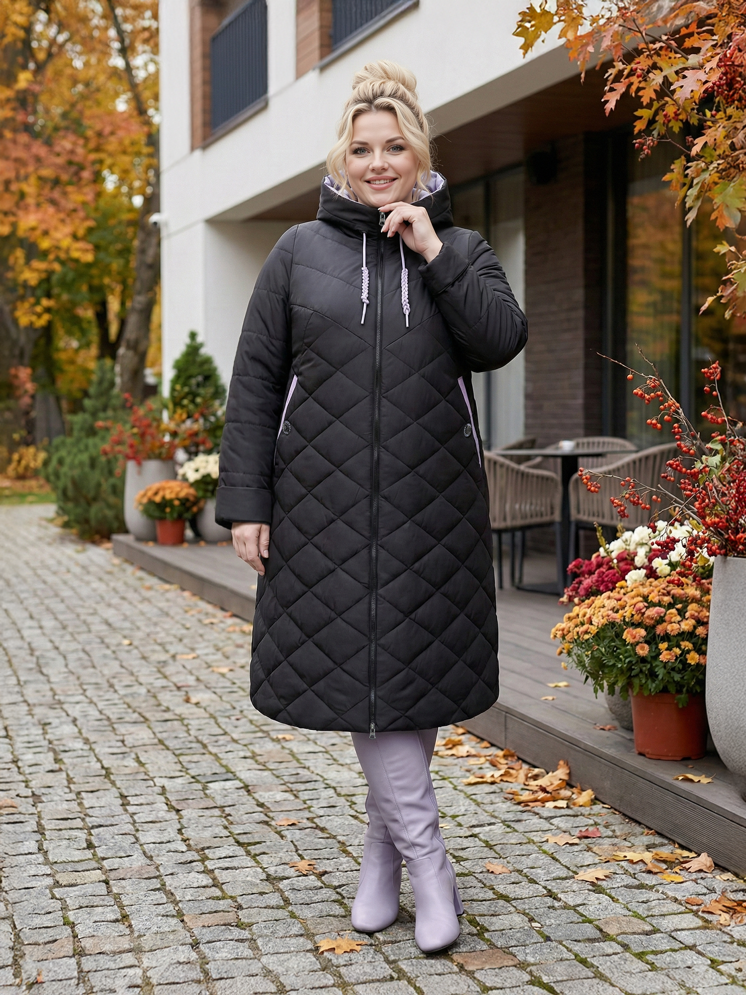 Уважаемые покупатели! Мы упростили выбор — для каждого артикула прописаны параметры груди и бедер. Ориентируйтесь на объем груди, затем проверьте, входит ли ваш ОБ в диапазон, указанный рядом с нужным размером. Если нет — фасон вам не подойдет, выберите другой. Наши конструкторы разрабатывают одежду для разных фигур, и вы обязательно найдете подходящий вариант. Этот фасон идеален для фигуры с разницей ОБ и ОГ 22 см. Длина по спинке 110 см. Также можно сверить мерки своего пальто с таблице промеров готового изделия. Если не уверены, отправьте рост, ОГ и ОБ — мы подскажем правильный размер. Отвечаем быстро, в течение дня. Так вы получите максимально точное попадание и избежите лишней пересылки. Женское демисезонное пальто большого размера — это теплое, стильное и практичное решение для прохладной осенней погоды до -5℃. Удлиненная модель с капюшоном дорогого премиум класса создана специально для полных женщин и отличается продуманным кроем реглан и комфортной посадкой. А-силуэт в форме трапеции и длина ниже колена визуально стройнят фигуру и дарят свободу движений. Эта длинная куртка деми выполнена на прочной брендовой молнии YKK с удобным замком. Утепленное синтепоном, она отлично сохраняет тепло, подходит на осень. Классическое исполнение сочетается с модным дизайном и красивыми расцветками, что делает модель универсальной частью вашего гардероба. Такая стеганая верхняя одежда на демисезон — классика для любящих комфорт и актуальные тенденции. Она подчеркнёт вашу индивидуальность и привлечёт взгляды. Наше качество радует годами и заслуживает пристального внимания. Отзывы с превосходными оценками помогут вам определиться с заказом. Чтобы не пропустить новые коллекции 2025 2026 плюс сайз, нажмите на логотип Trevery и добавьте наш сайт в избранное. Приятных покупок!