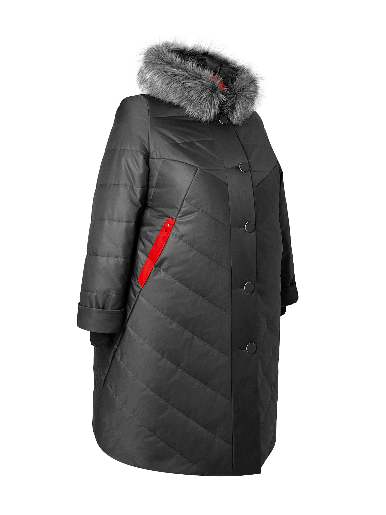 Интересное молодежное зимнее пальто из комбинированной стеганой ткани черного цвета с красной отделкой. Модель выглядит современно за счет трапециевидного силуэта, обеспечивающего хорошую посадку по фигуре. Большой комфортный капюшон с эко-мехом чернобурки. В модели на внутренней манишке установлена высококачественная профессиональная молния из Японии. Бренд YKK изготавливает их по нашему заказу для каждого изделия. Мы настолько уверены в качестве наших молний, что даем на них гарантию 25 лет. Основная застежка на пуговицы. Карман в шве, с цветной вставкой и хольнитеном. Рукав полуреглан с мягкой манжетой по низу и трикотажным напульсником. На этой модели применена ручная вырезка и подгонка рисунка стежки на деталях полочек и спинки. Это делает процесс изготовления более трудоемким, и при этом каждое изделие выполнено индивидуально. Такая технология позволяет располагать стежку не горизонтально, как у большинства производителей, а по диагонали, что делает модель привлекательней.