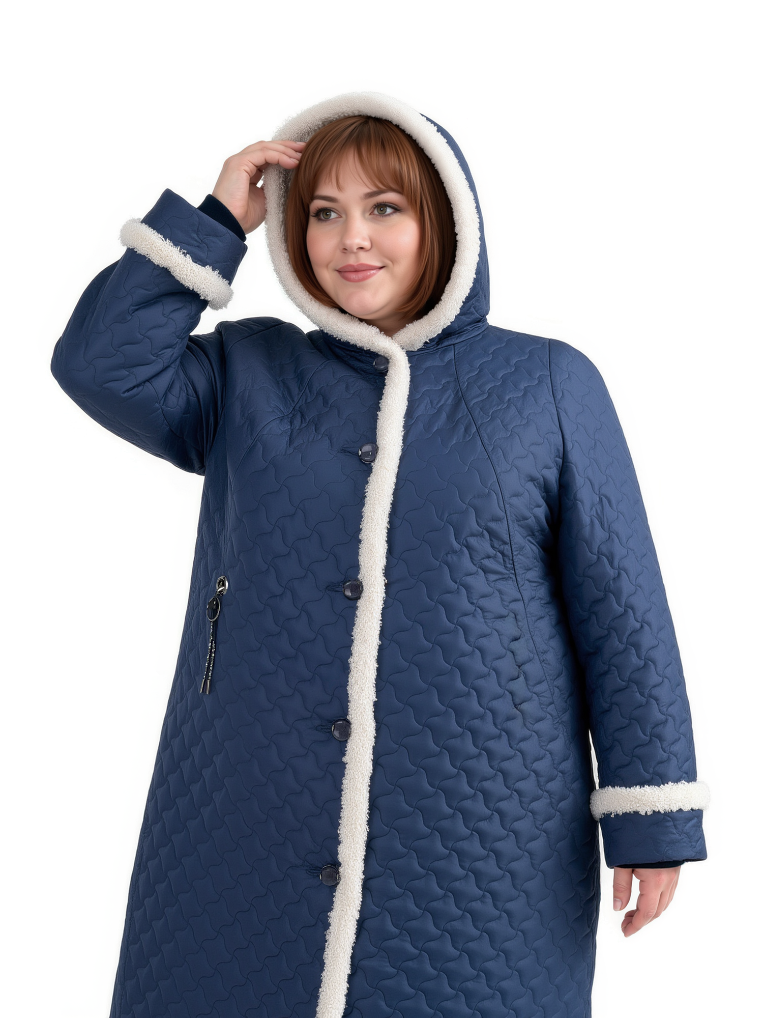 Уважаемые покупатели! Мы упростили выбор — для каждого артикула указаны параметры груди и бёдер. Ориентируйтесь на объём груди, затем проверьте, входит ли ваш ОБ в диапазон, указанный рядом с нужным размером. Если нет — фасон вам не подойдет, выберите другой. Наши конструкторы разрабатывают одежду для разных типов фигур, и вы обязательно найдёте подходящий вариант. Этот фасон идеален для фигуры с разницей ОБ и ОГ 18 см. Длина по спинке 117 см. Также можно сверить мерки своего пальто с таблице промеров готового изделия. Если не уверены — отправьте рост, ОГ и ОБ, подскажем правильный размер. Отвечаем быстро — в течение дня. Это поможет сделать точный выбор и избежать лишней пересылки. Женское зимнее пальто большого размера — стильное и практичное решение для холодной погоды до -25℃. Удлиненная теплая модель с капюшоном создана специально для полных женщин и отличается продуманным кроем реглан и комфортной посадкой. А-силуэт в форме трапеции и длина ниже колена визуально стройнят фигуру и обеспечивают свободу движений. Это длинное стеганое пальто застегивается на пуговицы и идеально подойдёт на зиму. Классическое исполнение с мехом сочетается с модным дизайном и красивыми расцветками, делая эту утепленную модель универсальной частью гардероба. Такая верхняя одежда на синтепоне — это проверенная классика для тех, кто любит комфорт, актуальные тенденции и практичность. Она подчеркнёт вашу индивидуальность и привлечёт внимание окружающих. Наше качество радует годами и заслуживает вашего доверия. Отзывы с превосходными оценками помогут определиться с заказом. Чтобы не пропустить новые коллекции 2025–2026 плюс сайз, нажмите на логотип Trevery и добавьте наш сайт в избранное. Приятных покупок!