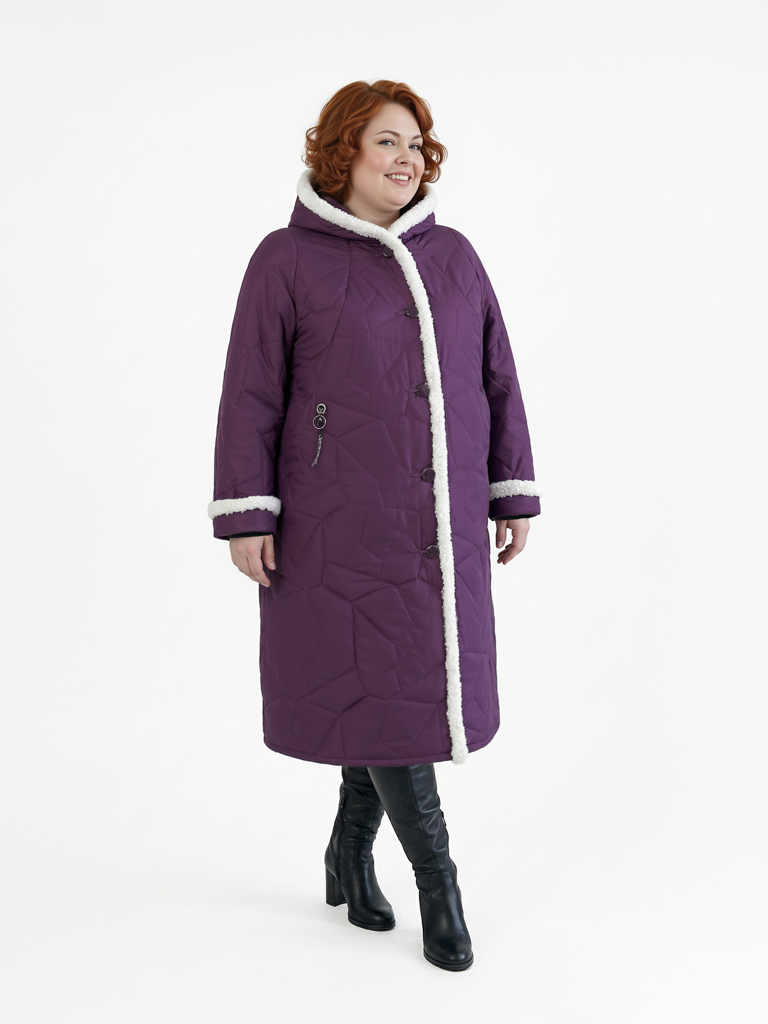 Уважаемые покупатели! Мы упростили выбор — для каждого артикула указаны параметры груди и бёдер. Ориентируйтесь на объём груди, затем проверьте, входит ли ваш ОБ в диапазон, указанный рядом с нужным размером. Если нет — фасон вам не подойдет, выберите другой. Наши конструкторы разрабатывают одежду для разных типов фигур, и вы обязательно найдёте подходящий вариант. Этот фасон идеален для фигуры с разницей ОБ и ОГ 12 см. Длина по спинке 115 см. Также можно сверить мерки своего пальто с таблице промеров готового изделия. Если не уверены — отправьте рост, ОГ и ОБ, подскажем правильный размер. Отвечаем быстро — в течение дня. Это поможет сделать точный выбор и избежать лишней пересылки. Женское зимнее пальто большого размера — стильное и практичное решение для холодной погоды до -25℃. Удлиненная теплая модель с капюшоном создана специально для полных женщин и отличается продуманным кроем реглан и комфортной посадкой. А-силуэт в форме трапеции и длина ниже колена визуально стройнят фигуру и обеспечивают свободу движений. Это длинное стеганое пальто застегивается на пуговицы и идеально подойдёт на зиму. Классическое исполнение с мехом сочетается с модным дизайном и красивыми расцветками, делая эту утепленную модель универсальной частью гардероба. Такая верхняя одежда на синтепоне — это проверенная классика для тех, кто любит комфорт, актуальные тенденции и практичность. Она подчеркнёт вашу индивидуальность и привлечёт внимание окружающих. Наше качество радует годами и заслуживает вашего доверия. Отзывы с превосходными оценками помогут определиться с заказом. Чтобы не пропустить новые коллекции 2025–2026 плюс сайз, нажмите на логотип Trevery и добавьте наш сайт в избранное. Приятных покупок!