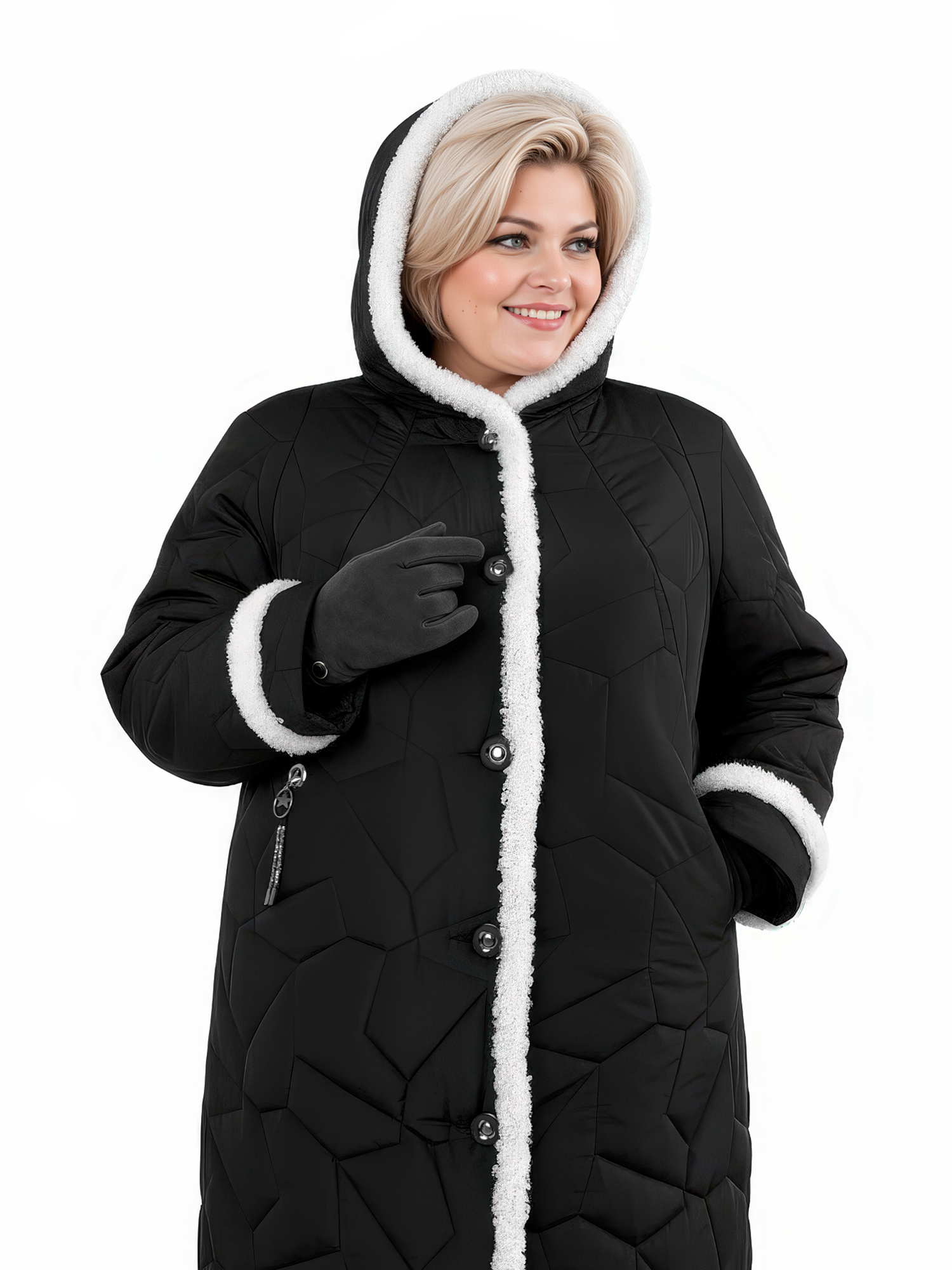 Уважаемые покупатели! Мы упростили выбор — для каждого артикула указаны параметры груди и бёдер. Ориентируйтесь на объём груди, затем проверьте, входит ли ваш ОБ в диапазон, указанный рядом с нужным размером. Если нет — фасон вам не подойдет, выберите другой. Наши конструкторы разрабатывают одежду для разных типов фигур, и вы обязательно найдёте подходящий вариант. Этот фасон идеален для фигуры с разницей ОБ и ОГ 14 см. Длина по спинке 114 см. Также можно сверить мерки своего пальто с таблице промеров готового изделия. Если не уверены — отправьте рост, ОГ и ОБ, подскажем правильный размер. Отвечаем быстро — в течение дня. Это поможет сделать точный выбор и избежать лишней пересылки. Женское зимнее пальто большого размера — стильное и практичное решение для холодной погоды до -25℃. Удлиненная теплая модель с капюшоном создана специально для полных женщин и отличается продуманным кроем реглан и комфортной посадкой. А-силуэт в форме трапеции и длина ниже колена визуально стройнят фигуру и обеспечивают свободу движений. Это длинное стеганое пальто застегивается на пуговицы и идеально подойдёт на зиму. Классическое исполнение с мехом сочетается с модным дизайном и красивыми расцветками, делая эту утепленную модель универсальной частью гардероба. Такая верхняя одежда на синтепоне — это проверенная классика для тех, кто любит комфорт, актуальные тенденции и практичность. Она подчеркнёт вашу индивидуальность и привлечёт внимание окружающих. Наше качество радует годами и заслуживает вашего доверия. Отзывы с превосходными оценками помогут определиться с заказом. Чтобы не пропустить новые коллекции 2025–2026 плюс сайз, нажмите на логотип Trevery и добавьте наш сайт в избранное. Приятных покупок!