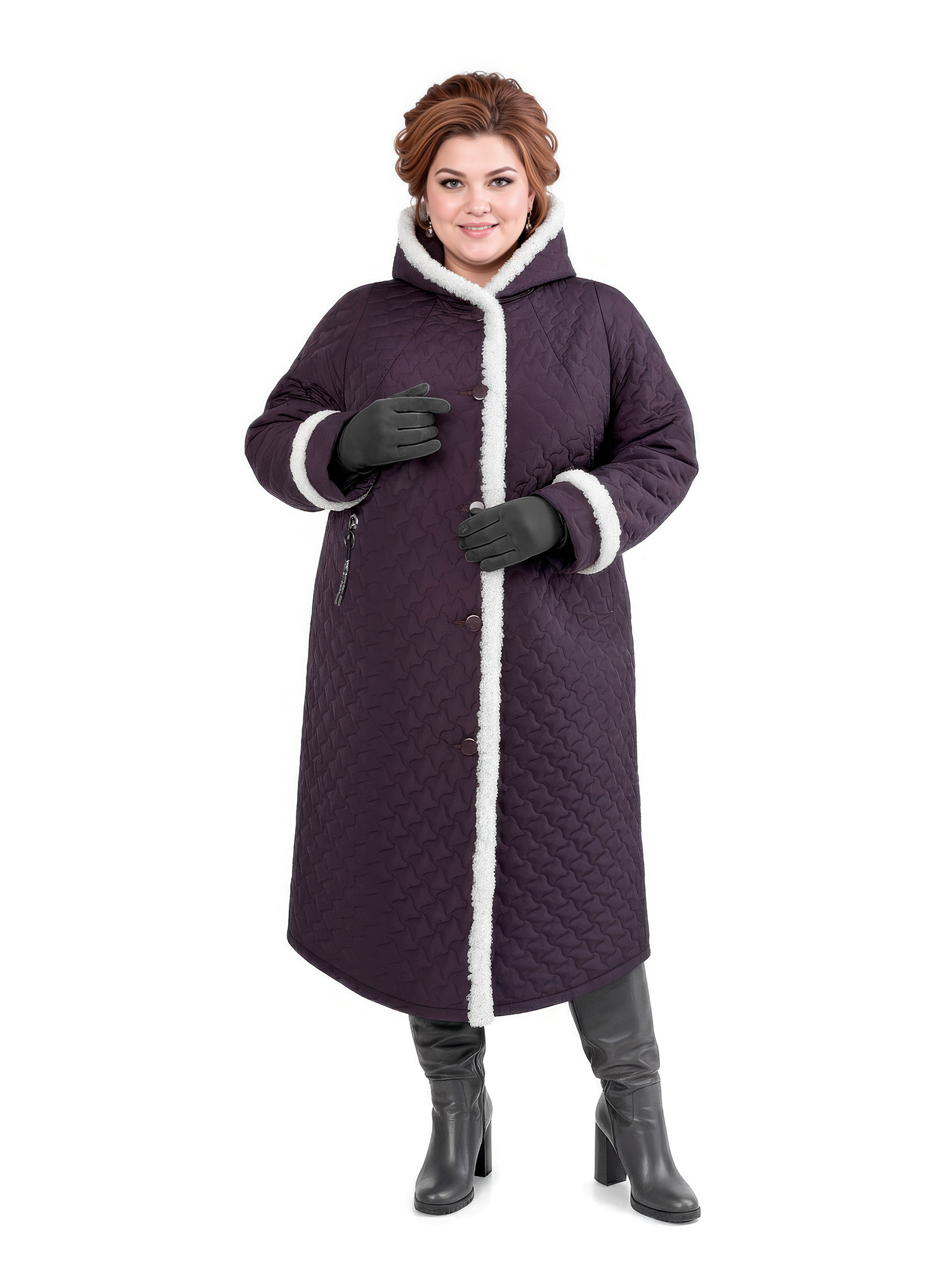 Уважаемые покупатели! Мы упростили выбор — для каждого артикула указаны параметры груди и бёдер. Ориентируйтесь на объём груди, затем проверьте, входит ли ваш ОБ в диапазон, указанный рядом с нужным размером. Если нет — фасон вам не подойдет, выберите другой. Наши конструкторы разрабатывают одежду для разных типов фигур, и вы обязательно найдёте подходящий вариант. Этот фасон идеален для фигуры с разницей ОБ и ОГ 14 см. Длина по спинке 114 см. Также можно сверить мерки своего пальто с таблице промеров готового изделия. Если не уверены — отправьте рост, ОГ и ОБ, подскажем правильный размер. Отвечаем быстро — в течение дня. Это поможет сделать точный выбор и избежать лишней пересылки. Женское зимнее пальто большого размера — стильное и практичное решение для холодной погоды до -25℃. Удлиненная теплая модель с капюшоном создана специально для полных женщин и отличается продуманным кроем реглан и комфортной посадкой. А-силуэт в форме трапеции и длина ниже колена визуально стройнят фигуру и обеспечивают свободу движений. Это длинное стеганое пальто застегивается на пуговицы и идеально подойдёт на зиму. Классическое исполнение с мехом сочетается с модным дизайном и красивыми расцветками, делая эту утепленную модель универсальной частью гардероба. Такая верхняя одежда на синтепоне — это проверенная классика для тех, кто любит комфорт, актуальные тенденции и практичность. Она подчеркнёт вашу индивидуальность и привлечёт внимание окружающих. Наше качество радует годами и заслуживает вашего доверия. Отзывы с превосходными оценками помогут определиться с заказом. Чтобы не пропустить новые коллекции 2025–2026 плюс сайз, нажмите на логотип Trevery и добавьте наш сайт в избранное. Приятных покупок!