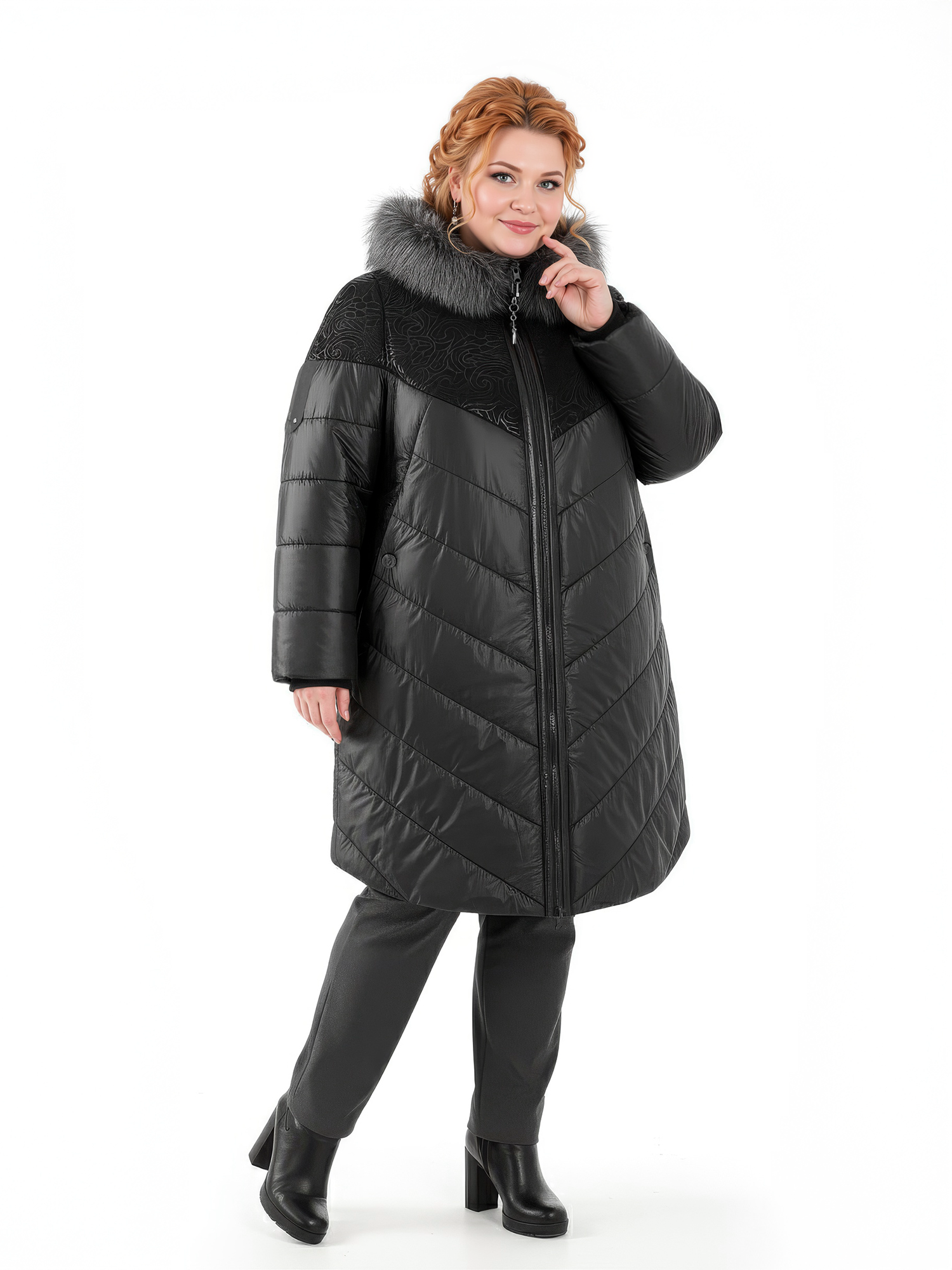 Уважаемые покупатели! Мы упростили выбор — для каждого артикула прописаны параметры груди и бедер. Ориентируйтесь на объем груди, затем проверьте, входит ли ваш ОБ в диапазон, указанный рядом с нужным размером. Если нет — фасон вам не подойдет, выберите другой. Наши конструкторы разрабатывают модели для разных фигур, и вы обязательно найдете подходящий вариант. Этот фасон идеален для фигуры с разницей ОБ и ОГ 16 см. Также можно сверить мерки своего пальто с таблице промеров готового изделия. Если не уверены, отправьте рост, ОГ и ОБ — мы подскажем правильный размер. Отвечаем быстро, в течение дня. Так вы получите максимально точное попадание и избежите лишней пересылки. Пуховик женский зимний больших размеров — это сочетание практичности и продуманного кроя. Удлиненная модель выполнена в виде А-силуэта и повторяет форму трапеции, что делает фигуру визуально стройнее. Длина ниже колен обеспечивает надежную защиту в холодную зиму. Эта длинная куртка сшита специально для полных женщин, учитывая особенности фигуры и потребности. Незаменимый реглан добавляет свободы в движении и удобства в носке. Длина по спинке 102 см. Модная модель украшена капюшоном с мехом чернобурки, который гармонично сочетается с общим стилем. Прочная молния с брендовым замком YKK не подведет в любой мороз. Утепленный пуховик на современном синтепоне обеспечит комфорт в суровую погоду. Такая красивая и теплая верхняя одежда впишется в ваш гардероб. В ней сочетаются стильный дизайн и классическое исполнение, делая ее настоящей классикой. Подчеркните свою индивидуальность с этим жен пальто — стеганое, элегантное, с акцентом на детали и безупречную посадку. Отзывы с превосходными оценками помогут вам определиться с заказом. Чтобы не пропустить новые коллекции 2025 2026 плюс сайз, нажмите на логотип Trevery и добавьте наш сайт в избранное. Приятных покупок!