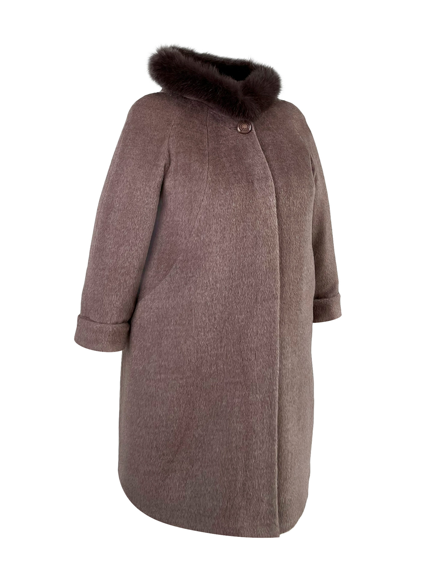 Зимнее женское пальто из драпа силуэта трапеция. Капюшон оформлен натуральным пушистым песцом. Свободный покрой, вертикальные рельефы, карманы в шве и удобная длина визуально вытягивают силуэт. Застежка на декоративную пуговицу и супату дополнительно украшают модель и не оставят незамеченной свою обладательницу.