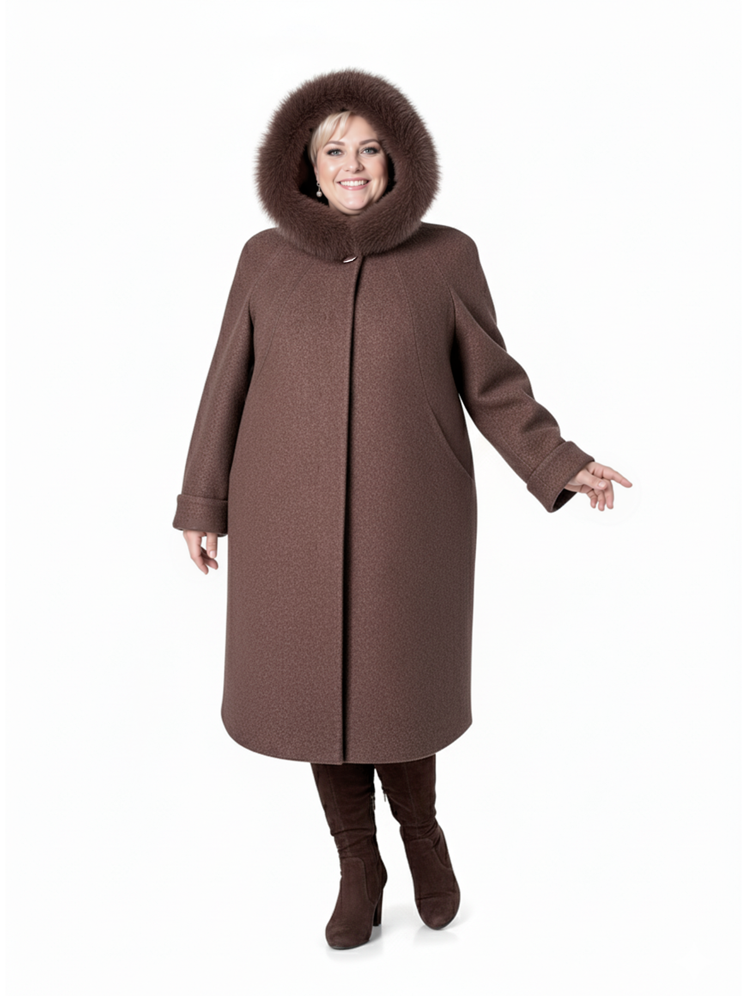 Зимнее женское пальто из драпа силуэта трапеция. Капюшон оформлен пушистым песцом. Свободный покрой, вертикальные рельефы, карманы в шве и удобная длина визуально вытягивают силуэт. Застежка на декоративные кнопки и супату дополнительно украшают модель и не оставят незамеченной свою обладательницу.