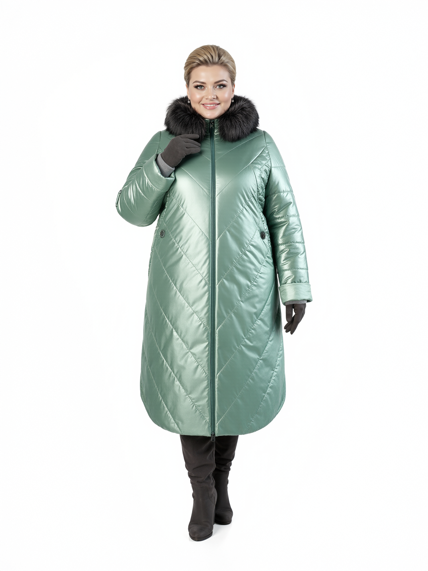 Интересное женское пальто из комбинированной стеганой ткани роскошного мятного цвета. Модель выглядит современно за счет трапециевидного силуэта, обеспечивающего хорошую посадку по фигуре. Большой комфортный капюшон в виде стойки с эко-мехом чернобурки, защищает от непогоды. В модели установлены высококачественные профессиональные молнии из Японии. Бренд YKK изготавливает их по нашему заказу для каждого изделия. Мы настолько уверены в качестве наших молний, что даем на них гарантию 25 лет. Карман в шве, с брендированной кнопкой. Рукав полуреглан с трикотажным напульсником по низу. На этой модели применена ручная вырезка и подгонка рисунка стежки на деталях полочек и спинки. Это делает процесс изготовления более трудоемким, и при этом каждое изделие выполнено индивидуально. Такая технология позволяет располагать стежку не горизонтально, как у большинства производителей, а по диагонали, что делает модель привлекательней.