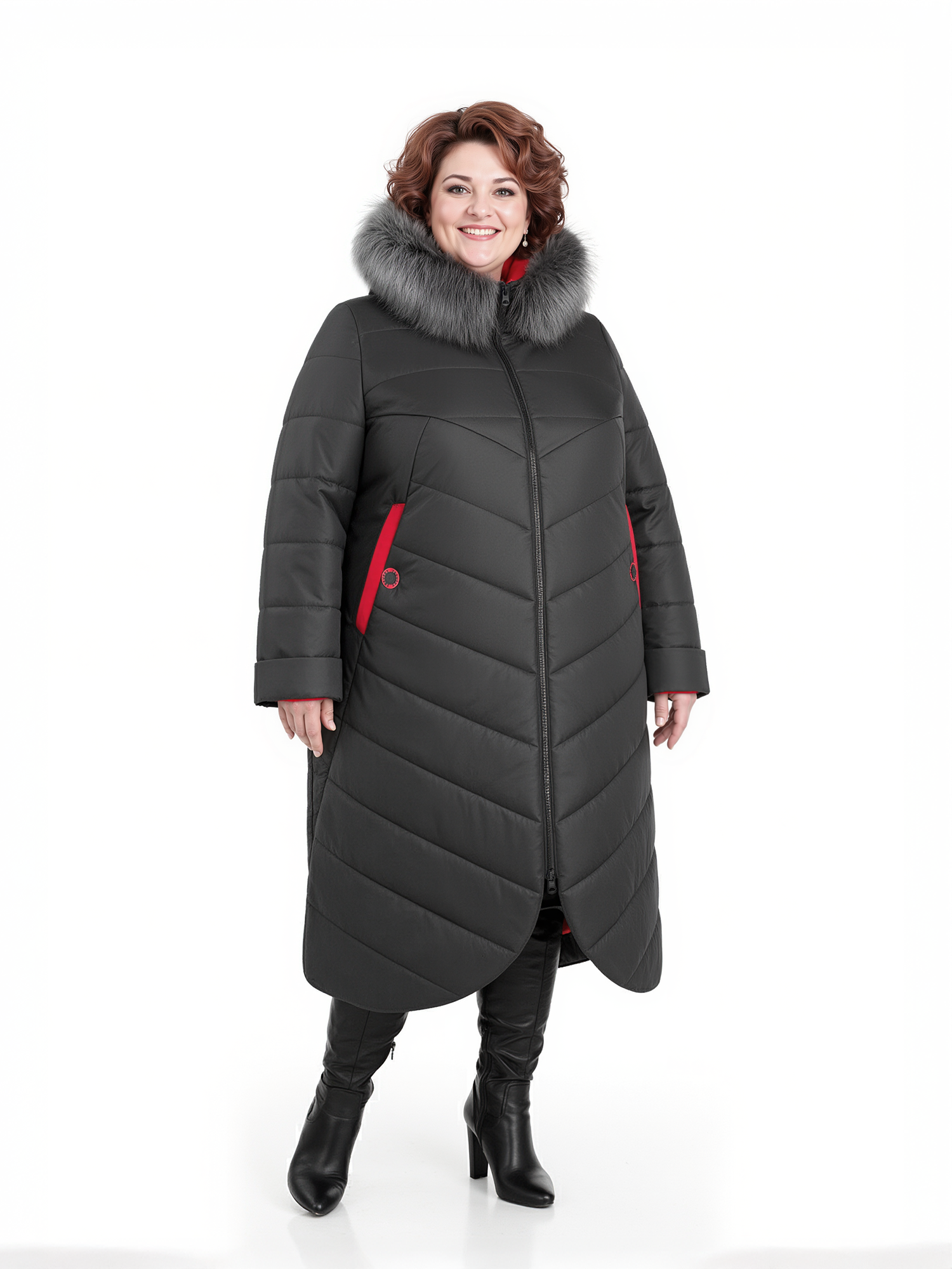 Уважаемые покупатели! Мы упростили выбор — для каждого артикула прописаны параметры груди и бедер. Ориентируйтесь на объем груди, затем проверьте, входит ли ваш ОБ в диапазон, указанный рядом с нужным размером. Если нет — фасон вам не подойдет, выберите другой. Наши конструкторы разрабатывают модели для разных фигур, и вы обязательно найдете подходящий вариант. Этот фасон идеален для фигуры с разницей ОБ и ОГ 16 см. Также можно сверить мерки своего пальто с таблице промеров готового изделия. Если не уверены, отправьте рост, ОГ и ОБ — мы подскажем правильный размер. Отвечаем быстро, в течение дня. Так вы получите максимально точное попадание и избежите лишней пересылки. Пуховик женский зимний больших размеров — это сочетание практичности и продуманного асимметричного кроя. Удлиненная модель выполнена в виде А-силуэта и повторяет форму трапеции, что делает фигуру визуально стройнее. Длина ниже колен обеспечивает надежную защиту в холодную зиму. Эта длинная куртка сшита специально для полных женщин, учитывая особенности фигуры и потребности. Незаменимый реглан добавляет свободы в движении и удобства в носке. Длина по спинке 115 см. Модная модель украшена капюшоном с мехом чернобурки, который гармонично сочетается с общим стилем. Прочная молния с брендовым замком YKK не подведет в любой мороз. Утепленный пуховик на современном синтепоне обеспечит комфорт в суровую погоду. Такая красивая и теплая верхняя одежда впишется в ваш гардероб. В ней сочетаются стильный дизайн и классическое исполнение, делая ее настоящей классикой. Подчеркните свою индивидуальность с этим жен пальто — стеганое, элегантное, с акцентом на детали и безупречную посадку. Отзывы с превосходными оценками помогут вам определиться с заказом. Чтобы не пропустить новые коллекции 2025 2026 плюс сайз, нажмите на логотип Trevery и добавьте наш сайт в избранное. Приятных покупок!