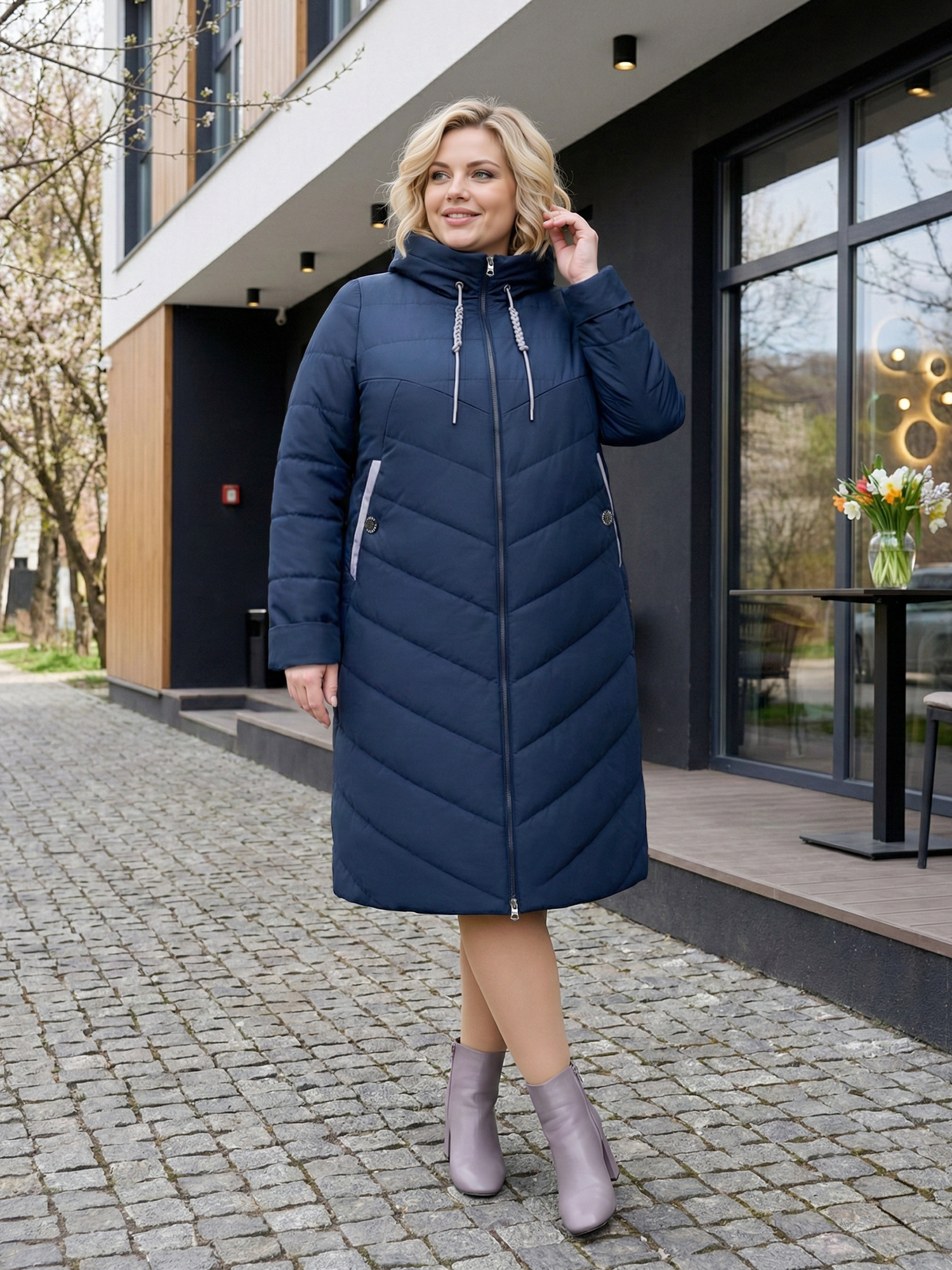 Уважаемые покупатели! Мы упростили выбор — для каждого артикула прописаны параметры груди и бедер. Ориентируйтесь на объем груди, затем проверьте, входит ли ваш ОБ в диапазон, указанный рядом с нужным размером. Если нет — фасон вам не подойдет, выберите другой. Наши конструкторы разрабатывают одежду для разных фигур, и вы обязательно найдете подходящий вариант. Этот фасон идеален для фигуры с разницей ОБ и ОГ 12 см. Длина по спинке 97 см. Также можно сверить мерки своего пальто с таблице промеров готового изделия. Если не уверены, отправьте рост, ОГ и ОБ — мы подскажем правильный размер. Отвечаем быстро, в течение дня. Так вы получите максимально точное попадание и избежите лишней пересылки. Женское демисезонное пальто большого размера — это теплое, стильное и практичное решение для прохладной осенней погоды до -5℃. Удлиненная модель с капюшоном дорогого премиум класса создана специально для полных женщин и отличается продуманным кроем реглан и комфортной посадкой. А-силуэт в форме трапеции и длина ниже колена визуально стройнят фигуру и дарят свободу движений. Эта длинная куртка деми выполнена на прочной брендовой молнии YKK с удобным замком. Утепленное синтепоном, она отлично сохраняет тепло, подходит на осень. Классическое исполнение сочетается с модным дизайном и красивыми расцветками, что делает модель универсальной частью вашего гардероба. Такая стеганая верхняя одежда на демисезон — классика для любящих комфорт и актуальные тенденции. Она подчеркнёт вашу индивидуальность и привлечёт взгляды. Наше качество радует годами и заслуживает пристального внимания. Отзывы с превосходными оценками помогут вам определиться с заказом. Чтобы не пропустить новые коллекции 2025 2026 плюс сайз, нажмите на логотип Trevery и добавьте наш сайт в избранное. Приятных покупок!