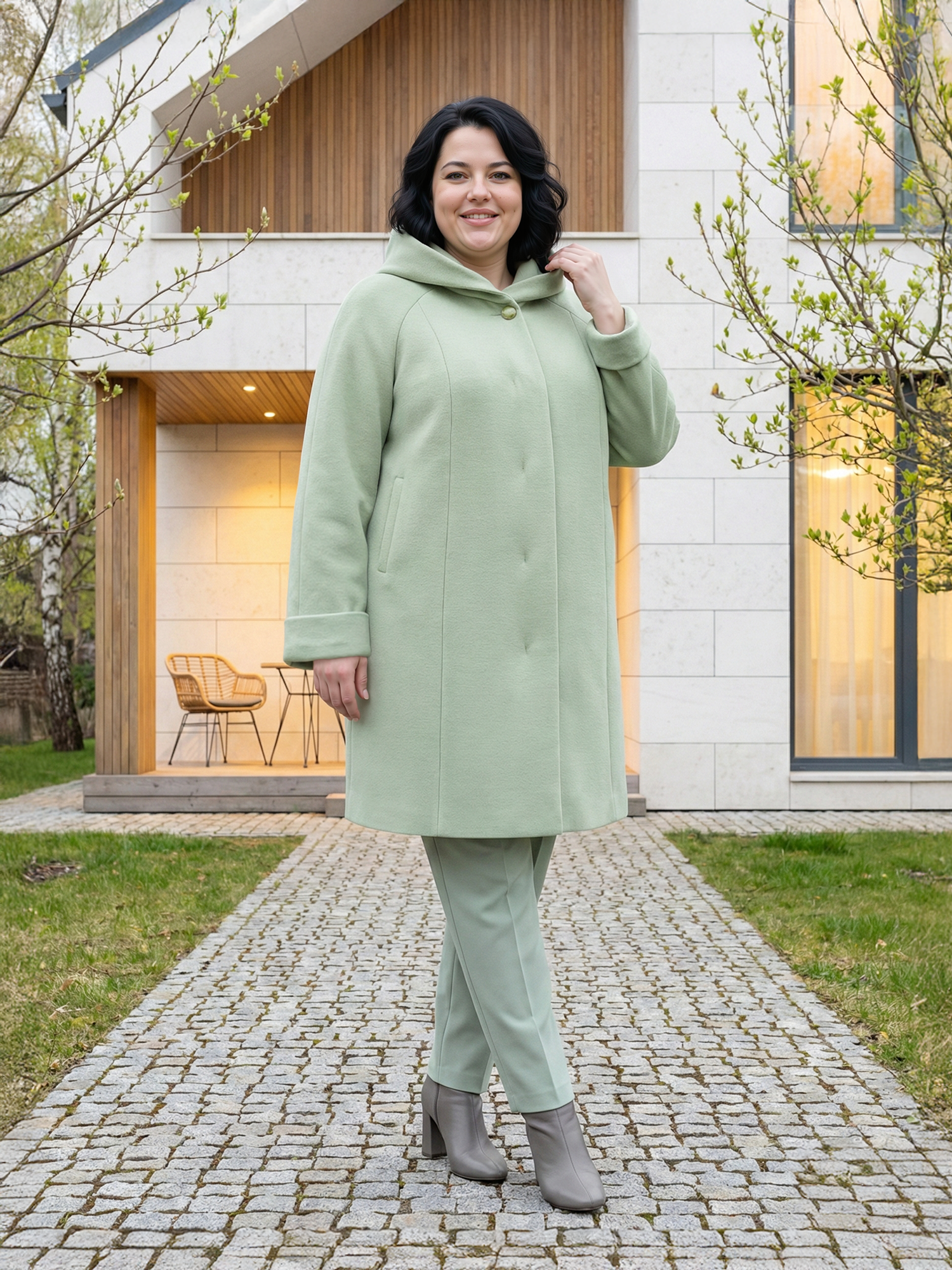 Уважаемые покупатели! Мы упростили выбор — для каждого артикула указаны параметры груди и бёдер. Ориентируйтесь на объём груди, затем проверьте, входит ли ваш ОБ в диапазон, указанный рядом с нужным размером. Если нет — фасон вам не подойдет, выберите другой. Наши конструкторы разрабатывают одежду для разных типов фигур, и вы обязательно найдёте подходящий вариант. Этот фасон идеален для фигуры с разницей ОБ и ОГ 16 см. Длина по спинке 102 см. Также можно сверить мерки своего пальто с таблице промеров готового изделия. Если не уверены — отправьте рост, ОГ и ОБ, мы подскажем правильный размер. Отвечаем быстро — в течение дня. Это поможет сделать точный выбор и избежать лишней пересылки. Женское демисезонное пальто большого размера — стильное и практичное решение из драпа для прохладной осенней и весенней погоды до +5℃. Удлинённая драповая модель с капюшоном создана специально для полных женщин и отличается продуманным кроем реглан и комфортной посадкой. А-силуэт в форме трапеции и длина ниже колена визуально стройнят фигуру и обеспечивают свободу движений. Это длинное кашемировое полупальто застегивается на пуговицы и идеально подойдёт на весну и осень. Классическое исполнение сочетается с модным дизайном и красивыми расцветками, делая эту облегченную модель универсальной частью гардероба. Такая верхняя одежда на демисезон — это проверенная классика из кашемира для тех, кто любит комфорт, актуальные тенденции и практичность. Она подчеркнёт вашу индивидуальность и привлечёт внимание окружающих. Наше качество радует годами и заслуживает вашего доверия. Отзывы с превосходными оценками помогут определиться с заказом. Чтобы не пропустить новые коллекции 2025–2026 плюс сайз, нажмите на логотип Trevery и добавьте наш сайт в избранное. Приятных покупок!