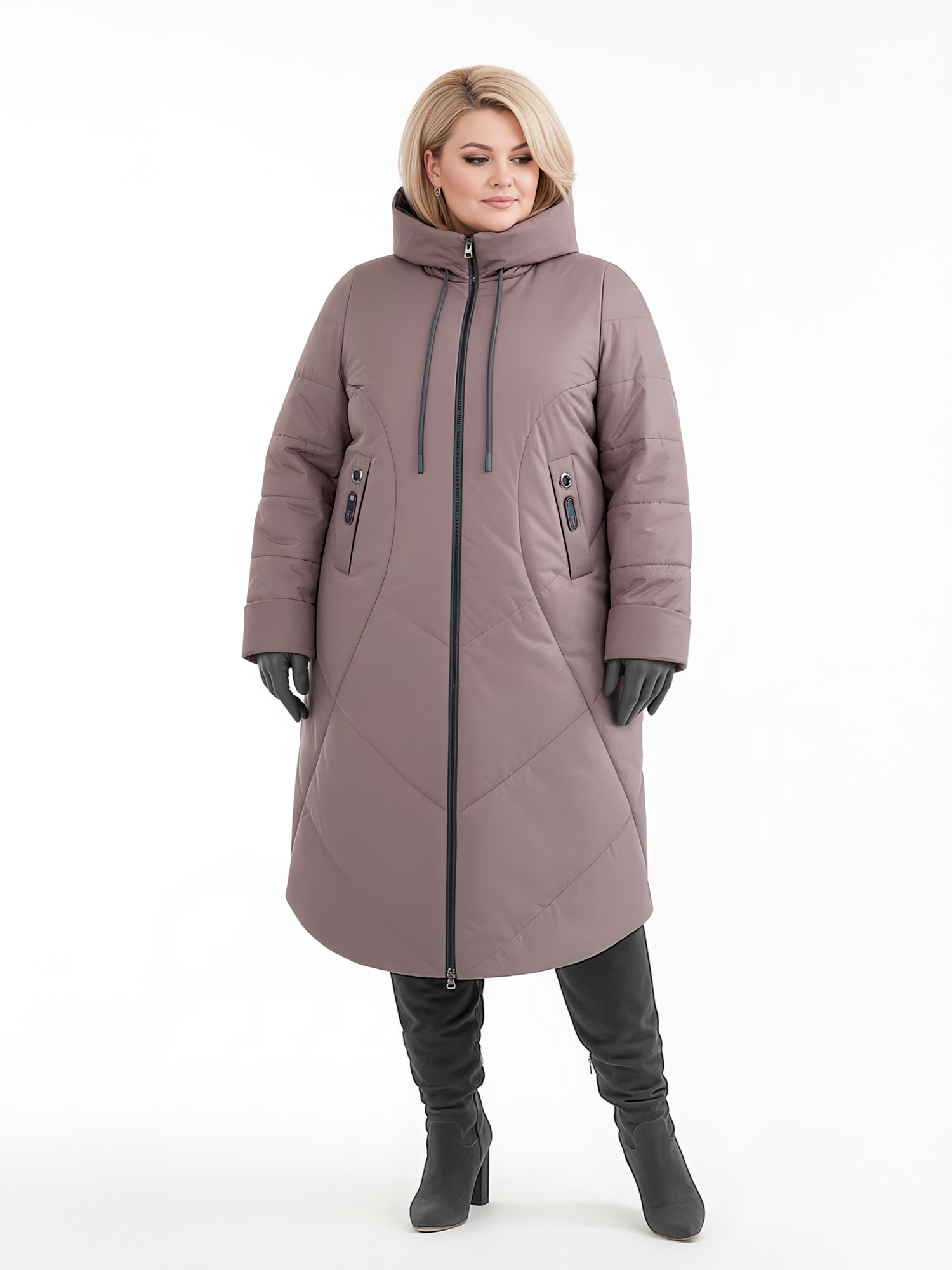 Уважаемые покупатели! Мы упростили выбор — для каждого артикула прописаны параметры груди и бедер. Ориентируйтесь на объем груди, затем проверьте, входит ли ваш ОБ в диапазон, указанный рядом с нужным размером. Если нет — фасон вам не подойдет, выберите другой. Наши конструкторы разрабатывают одежду для разных фигур, и вы обязательно найдете подходящий вариант. Этот фасон идеален для фигуры с разницей ОБ и ОГ 12 см. Длина по спинке 112 см. Также можно сверить мерки своего пальто с таблице промеров готового изделия. Если не уверены, отправьте рост, ОГ и ОБ — мы подскажем правильный размер. Отвечаем быстро, в течение дня. Так вы получите максимально точное попадание и избежите лишней пересылки. Женское демисезонное пальто большого размера — это теплое, стильное и практичное решение для прохладной осенней погоды до -5℃. Удлиненная модель с капюшоном дорогого премиум класса создана специально для полных женщин и отличается продуманным кроем реглан и комфортной посадкой. А-силуэт в форме трапеции и длина ниже колена визуально стройнят фигуру и дарят свободу движений. Эта длинная куртка деми выполнена на прочной брендовой молнии YKK с удобным замком. Утепленное синтепоном, она отлично сохраняет тепло, подходит на осень. Классическое исполнение сочетается с модным дизайном и красивыми расцветками, что делает модель универсальной частью вашего гардероба. Такая стеганая верхняя одежда на демисезон — классика для любящих комфорт и актуальные тенденции. Она подчеркнёт вашу индивидуальность и привлечёт взгляды. Наше качество радует годами и заслуживает пристального внимания. Отзывы с превосходными оценками помогут вам определиться с заказом. Чтобы не пропустить новые коллекции 2025 2026 плюс сайз, нажмите на логотип Trevery и добавьте наш сайт в избранное. Приятных покупок!