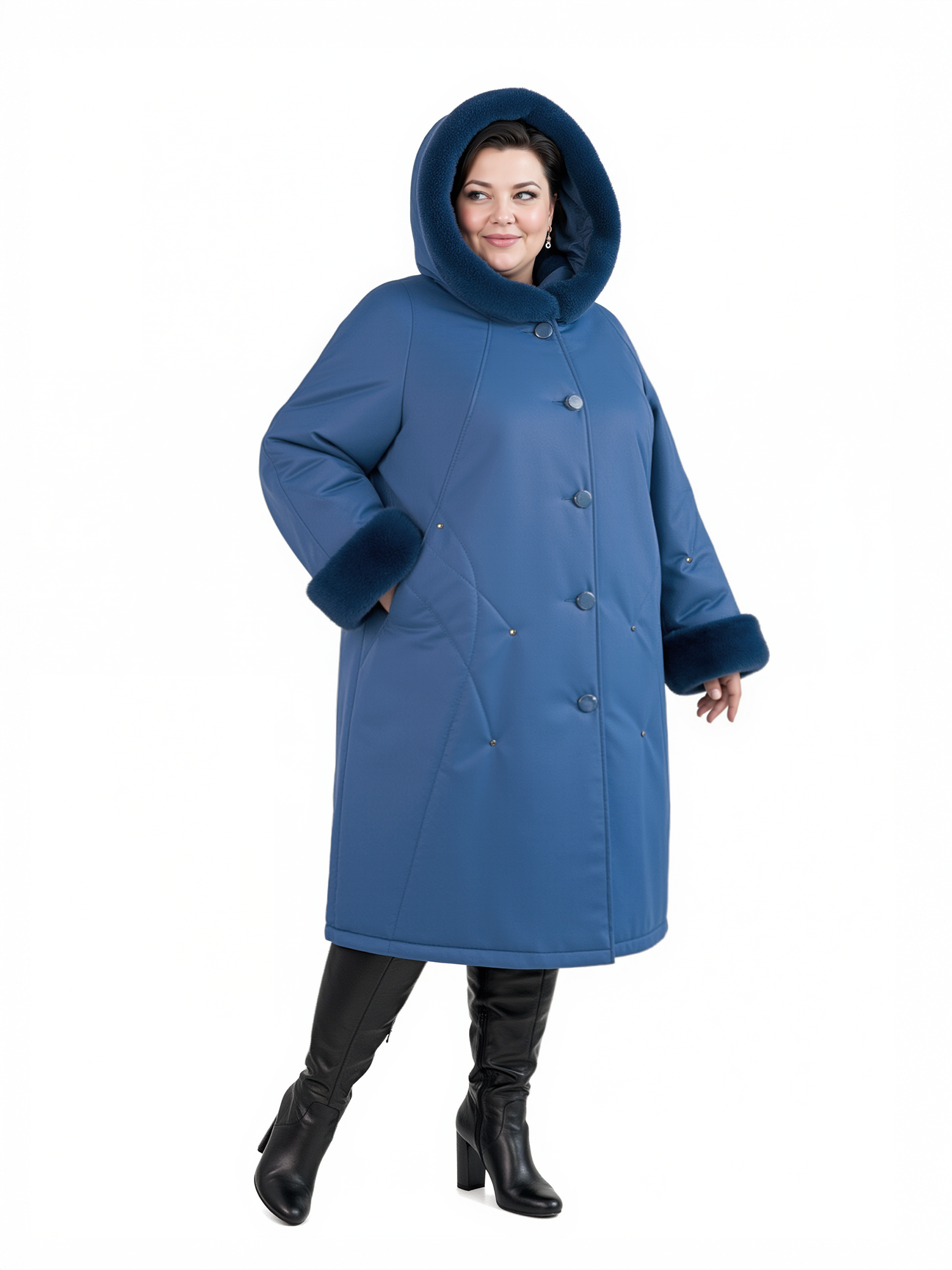 Уважаемые покупатели! Мы упростили выбор — для каждого артикула указаны параметры груди и бёдер. Ориентируйтесь на объём груди, затем проверьте, входит ли ваш ОБ в диапазон, указанный рядом с нужным размером. Если нет — фасон вам не подойдет, выберите другой. Наши конструкторы разрабатывают одежду для разных типов фигур, и вы обязательно найдёте подходящий вариант. Этот фасон идеален для фигуры с разницей ОБ и ОГ 14 см. Длина по спинке 108 см. Также можно сверить мерки своего пальто с таблице промеров готового изделия. Если не уверены — отправьте рост, ОГ и ОБ, подскажем правильный размер. Отвечаем быстро — в течение дня. Это поможет сделать точный выбор и избежать лишней пересылки. Женское зимнее пальто большого размера — стильное и практичное решение для холодной погоды до -25℃. Удлиненная теплая модель с капюшоном создана специально для полных женщин и отличается продуманным кроем реглан и комфортной посадкой. А-силуэт в форме трапеции и длина ниже колена визуально стройнят фигуру и обеспечивают свободу движений. Это длинное пальто на пуговицах идеально подойдёт на зиму. Классическое исполнение с мехом сочетается с модным дизайном и красивыми расцветками, делая эту утепленную модель универсальной частью гардероба. Такая верхняя одежда на синтепоне — это проверенная классика для тех, кто любит комфорт, актуальные тенденции и практичность. Она подчеркнёт вашу индивидуальность и привлечёт внимание окружающих. Наше качество радует годами и заслуживает вашего доверия. Отзывы с превосходными оценками помогут определиться с заказом. Чтобы не пропустить новые коллекции 2025–2026 плюс сайз, нажмите на логотип Trevery и добавьте наш сайт в избранное. Приятных покупок!