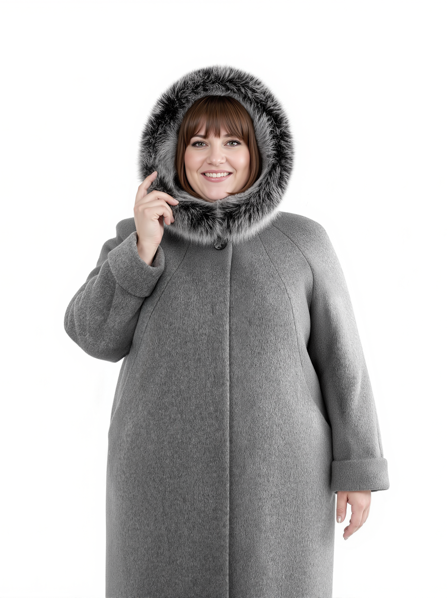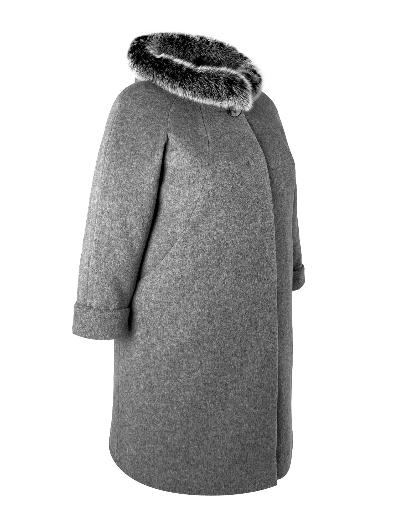 Зимнее женское пальто из драпа силуэта трапеция. Капюшон оформлен натуральным пушистым песцом. Свободный покрой, вертикальные рельефы, карманы в шве и удобная длина визуально вытягивают силуэт. Застежка на декоративную пуговицу и супату дополнительно украшают модель и не оставят незамеченной свою обладательницу.